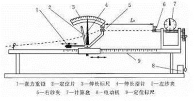 退捻加捻法是假設在一定張力下,紗線解捻后紗線伸長量與反向加捻時紗線縮短量相同的前提下進行測試的。一個典型的測試裝置如圖所示。