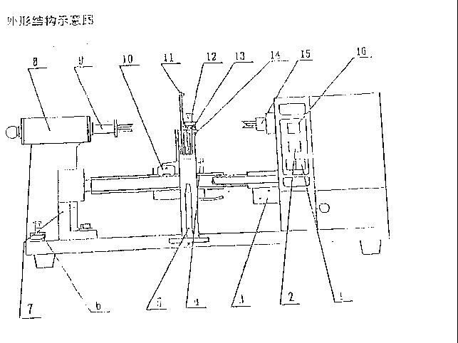 4、手柄 8、左夾頭座 12、壓重法張力器 16、停止按鈕
