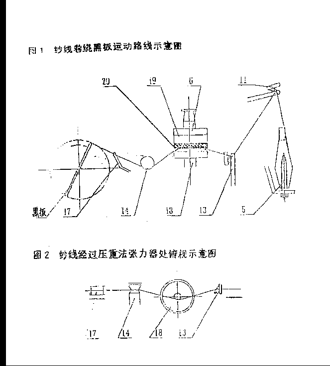 壓紗片(20)的平面一定要保持平整,緩沖圈(19)要有彈性,才能使紗線卷繞到黑板上的密度均勻。