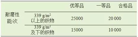 新標(biāo)準(zhǔn)對(duì)織物耐磨性的考核結(jié)合了產(chǎn)品等級(jí)的考核,對(duì)優(yōu)等品的考核和舊標(biāo)準(zhǔn)的要求保持一致,對(duì)一等品和合格品另外做了相關(guān)的規(guī)定,降低:25000次降低為2000次,15000次降低為1000次。