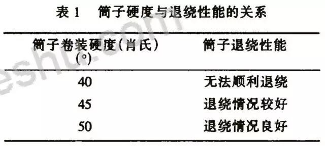 在保證其他質(zhì)量指標(biāo)的前提下,后加工應(yīng)采用較溫和的加工工藝參數(shù)。在工藝的具體設(shè)定上,應(yīng)考慮POY的生產(chǎn)狀況和各項(xiàng)質(zhì)量指標(biāo),一方面適當(dāng)降低后加工速度,減少拉伸比,適當(dāng)降低加熱箱溫度,一般第一熱箱溫度不超過(guò)205℃,第二熱箱溫度不超過(guò)170℃,以降低加工張力。加工張力比應(yīng)不高于1.2,盡可能掩蓋POY的質(zhì)量缺陷而不使其缺陷更加突出,另一方面調(diào)整好對(duì)絲條退繞性能有較大影響的卷裝成形參數(shù)。卷裝成形參數(shù)主要影響的是筒子的硬度,絆絲,疊絲,成形角和卷裝錐角等。在DTY筒子的成形參數(shù)設(shè)計(jì)方面,應(yīng)盡可能提高筒子的卷裝硬度,保持筒子硬度的一致性,筒子的卷裝硬度對(duì)絲條的退繞性能有著^明顯的影響,表1列出了卷裝硬度對(duì)退繞性能的影響。