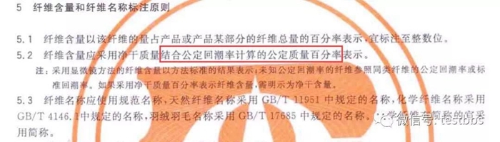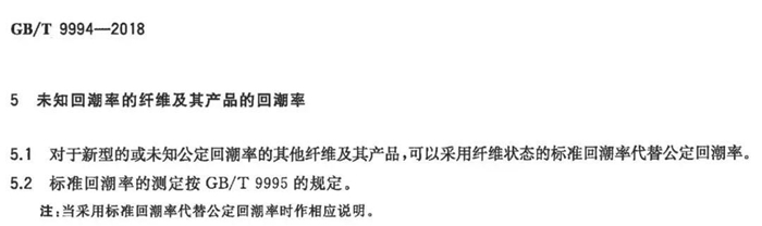 該標(biāo)準(zhǔn)第5章節(jié):對于新型的或未知公定回潮率的其他纖維及其成品,可以采用纖維狀態(tài)的標(biāo)準(zhǔn)回潮率代替公定回潮率。