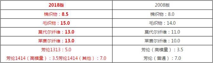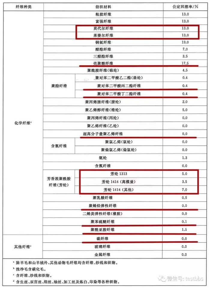 相關(guān)的公定回潮率見下表,紅色方框?yàn)樽兓糠郑t色橫線上為增加部分。