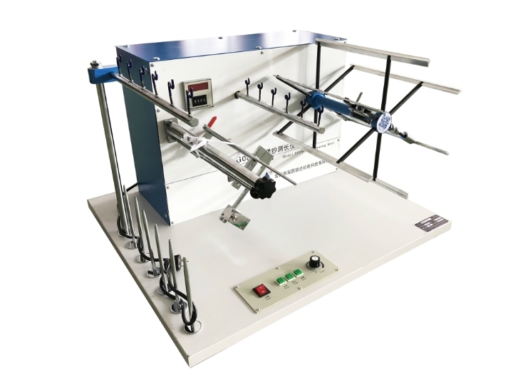 YG086C型縷紗測(cè)長(zhǎng)機(jī)用于搖取一定長(zhǎng)度的滌綸,錦綸,丙綸,纖維素化學(xué)纖維等長(zhǎng)絲(復(fù)絲和單絲),配合電子天平稱取克重,用于計(jì)算化纖絲的粗細(xì)程度指標(biāo)。(分特克斯dtex,旦尼爾D,特克斯tex)。