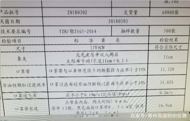2018年03月初聯(lián)系了一位生產(chǎn)口罩的用戶,他們想檢測(cè)成品口罩的透氣性,他們的要求是口罩透氣率大于0.1m/s(1m/s=1000mm/s),壓力設(shè)置為100pa,于是常州市雙固頓達(dá)機(jī)電科技有限公司(銷售電話15351977127)向他們推薦了用于檢測(cè)口罩透氣性的檢測(cè)儀器測(cè)試設(shè)備-SG461-III型透氣量?jī)x。