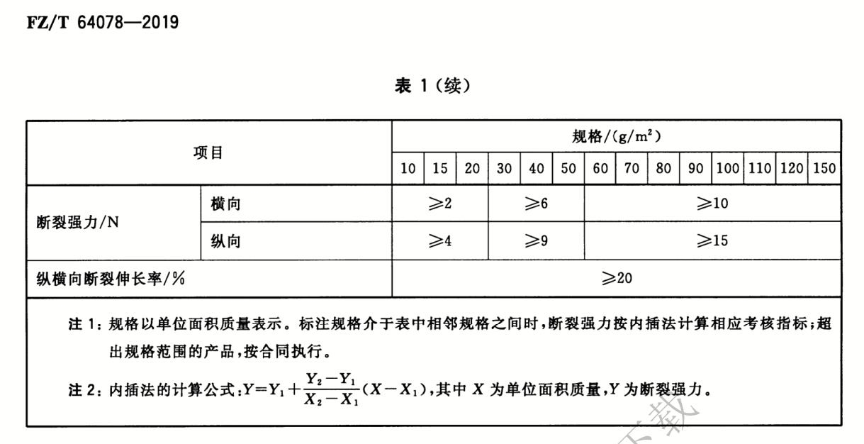 FZ/T 64078-2019 熔噴法非織造布適用于采用熔噴成網(wǎng)方法制造的纖網(wǎng)經(jīng)一種或多種技術(shù)固結(jié)而成的非織造布,熔噴法非織造布必須要檢測的指標(biāo)有幅寬偏差,單位面積的質(zhì)量,經(jīng)緯向的斷裂強(qiáng)力和斷裂伸長率,增加了選擇項(xiàng)技術(shù)要求,如果是作為空氣過濾材料的選擇項(xiàng)包括厚度,過濾效率,透氣率,阻燃性能,限(禁)用物質(zhì);作為保溫材料的選擇項(xiàng)包括熱阻,透氣率;作為吸油材料的選擇項(xiàng)包括吸油時(shí)間,吸油量。