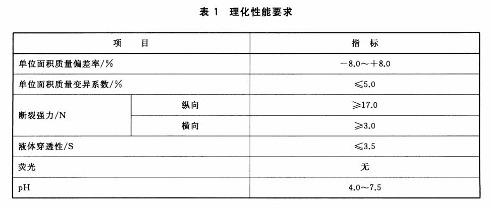 衛(wèi)生用薄型非織造布的理化性能應(yīng)符合表1規(guī)定