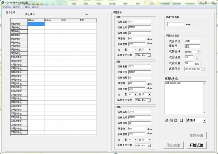 【YG368型全自動(dòng)長絲卷曲收縮率測試儀電腦軟件信息設(shè)置界面】